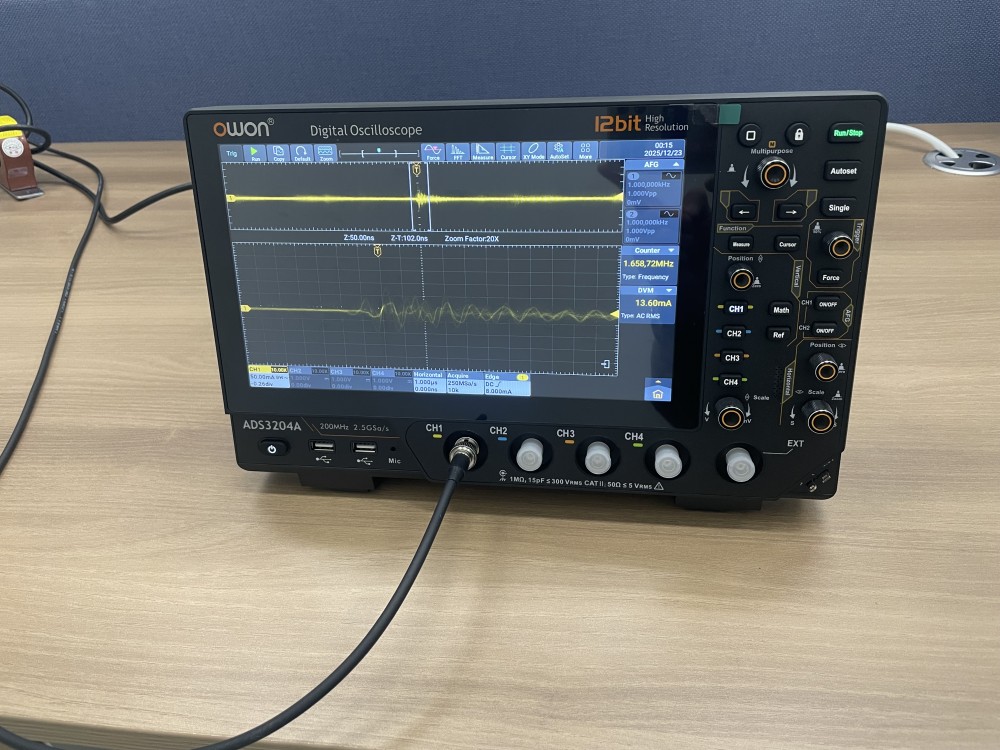계측기 갤러리 피앤디테크 테스트지그등을 만들어 납품하는 피앤디테크에서 4채널, 200M의 샘플링 속도가 높은 오실로스코프를 찾아 OWON ADS3204A를 추천해 드렸고 발주받아 납품해 드렸습니다. 고객 : 피앤디테크 제품 : OWON ADS3204A 4채널, 200MHz, 2.5GS/s, 100M 디지털 오실로스코프 종류 : 오실로스코프 응용 : 전압측정 감사합니다. 날짜: 26-02-01 13:13 조회: 103 관련링크 https://www.rndtech.co.kr/shop/item.php?it_id=1748496558 59회 연결 검색 목록 이전글CJ제일제당 식품연구소 26.02.01 다음글삼성전자 서울R&D캠퍼스 26.02.01