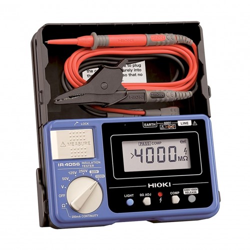Hioki 절연 테스터 또는 메고미터는 내장된 견고한 케이스 및 테스트 리드 스토리지 컴파트먼트를 포함한 일체형 설계를 특징으로 합니다. IR4056은 현장 절연 테스트와 관련된 작업 시간을 단축하는 데 도움이 되는 효율적인 기능과 기능을 갖춘 5가지 범위의 50V ~ 1000V 디지털 절연 저항 테스터입니다.