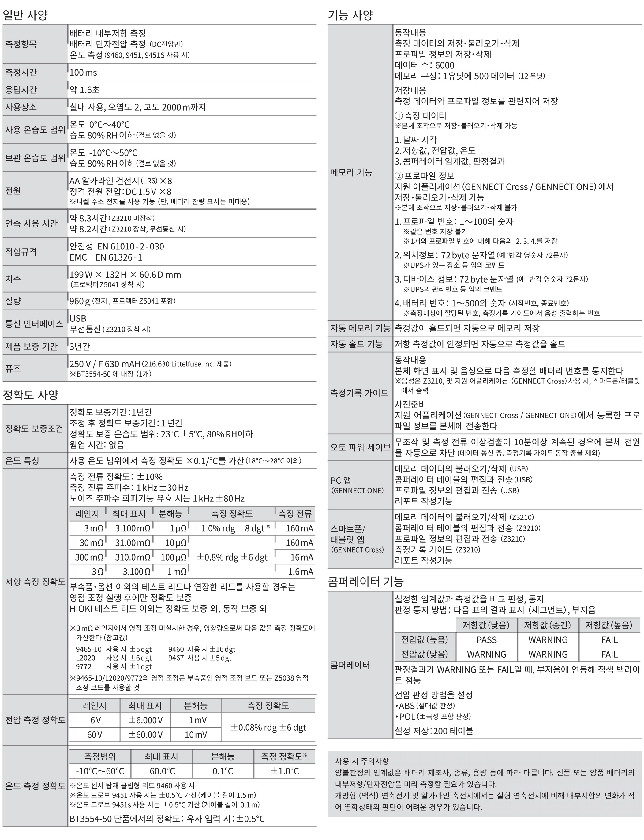 ※양불 진단의 임계값은 배터리의 제조사, 종류, 용량 등에 따라 다릅니다.신품 또는 양품의 배터리의 내부 저항/단자 전압을 미리 측정할 필요가 있습니다. 개방형 (액식) 납축전지나 알칼리 축전지에서는 seal형 납축전지에 비해 내부저항의 변화가 적어 열화상황을 진단하기 어려울 수 있습니다. ※ 2 Bluetooth ®로 연결된 단말기의 음성입니다. ※ 3 태블릿or스마트폰 용 앱(Google Play 혹은 iOS 용 App)을 사용하여 데이터를 회수할 수 있습니다. (Z3210 장착 시)