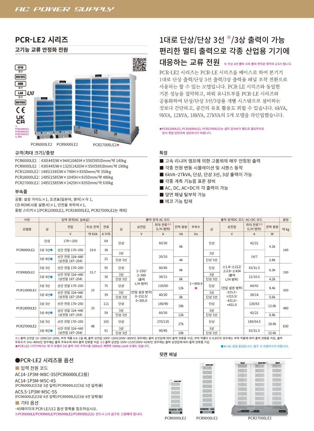 고성능 다기능 AC 전원 공급 장치, PCR-LE/LE2 시리즈