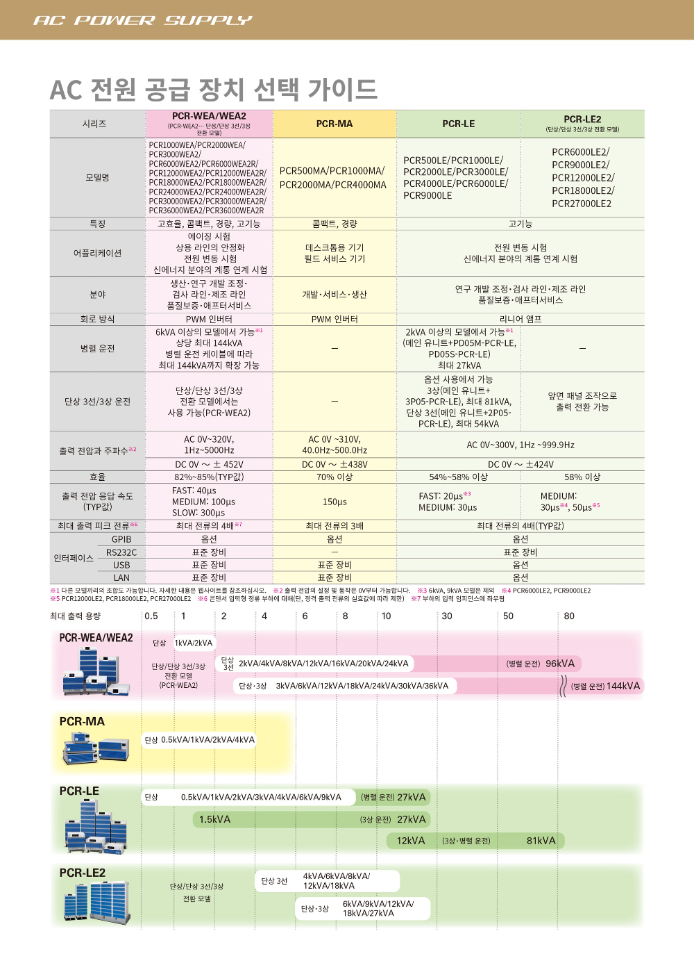 * 3kVA 이상의 경우 멀티형은 단상, 단상 3선, 3상 출력(PCR-WEA2)으로 전환 가능합니다. *2 6kVA 이상 모델은 최대 4대까지 병렬 운전이 가능하며, 입력 전압, 입력 배선 방식이 동일하다면 서로 다른 모델을 결합할 수 있습니다.