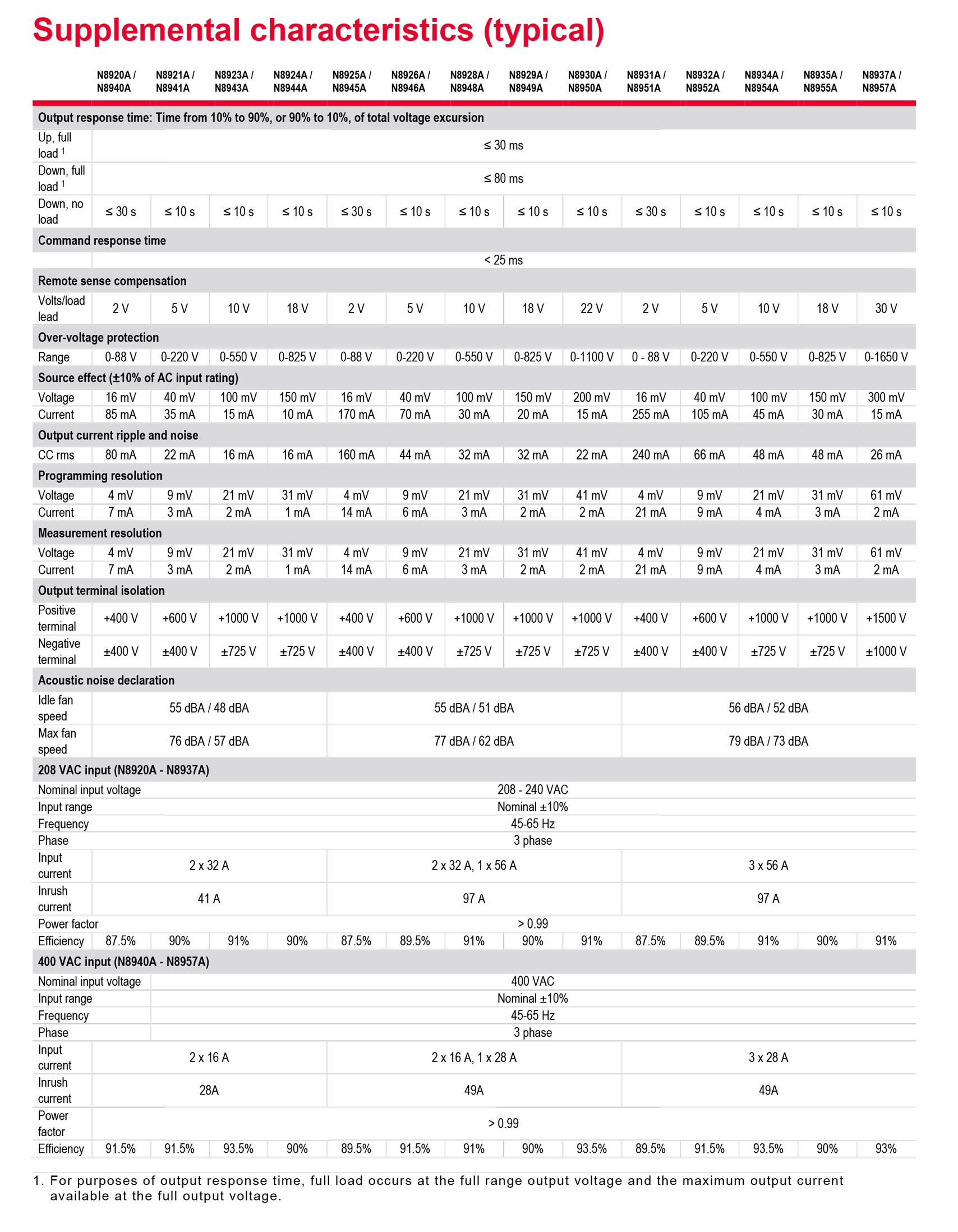 키사이트 N8900 시리즈는 14가지의 다양한 전압, 전류, 전력과 208VAC 또는 400VAC 조합으로 제공되는 5kW, 10kW, 15kW 자동 범위 조정, 단일 출력 전원 공급기 제품군입니다(총 28개 모델).