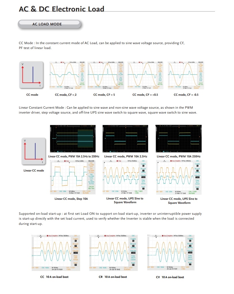 * CC, 선형 CC, CR, CV, CP 및 AC 정류기 부하 모드