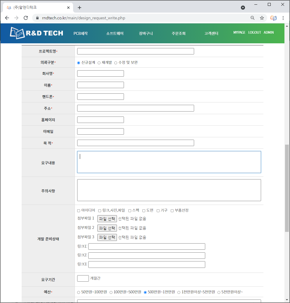 입력하면 개발문의 접수가 됩니다. 개발사는 접수된 내용을 토대로, 설계의 범위와 기간, 엔지니어투입, 난이도를 고려하여 견적하게 됩니다.