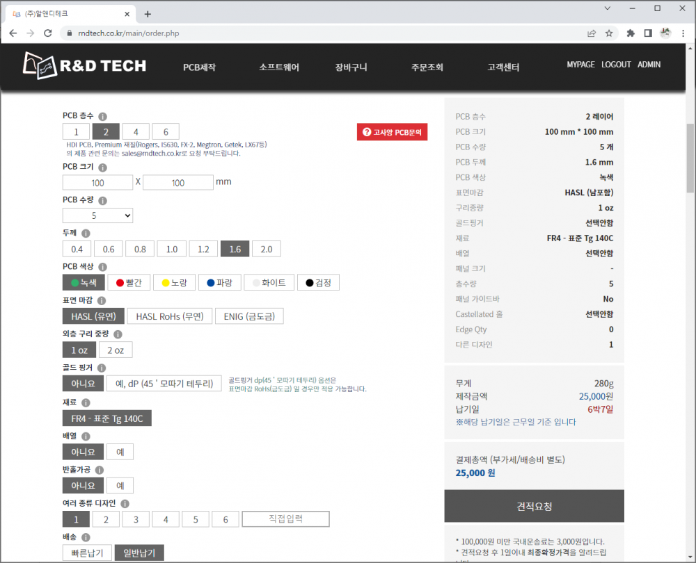 샘플PCB제작은 거버파일을 업로드하고 가격이 1초만에 제공됩니다. 저희 공장에서 제작가능한 스펙인지를 엔지니어가 CAM검토를 하게 되고, 이상없이 주문될 사양이면 견적서를 발행해 드립니다. 이에 따라 결제를 해주시면 자동으로 공장으로 주문이 진행됩니다.