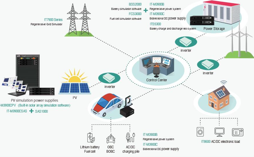 * 배터리 시뮬레이터인 IT-M3900C는 배터리를 시뮬레이션하여 인버터에 전원을 공급할 수 있을 뿐만 아니라 에너지 저장 변환기(PCS), 다양한
