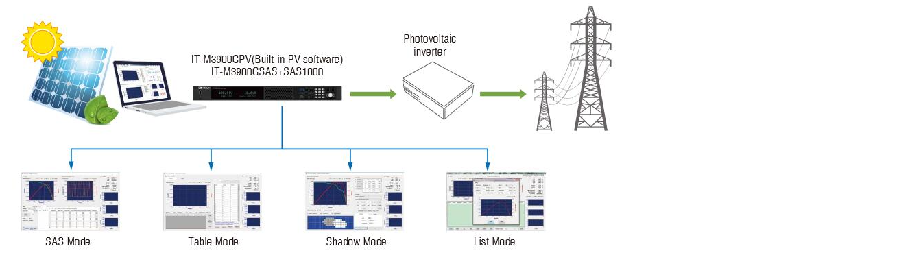 * 태양광 시뮬레이션 소스인 IT-M3900C는 태양광 전지 어레이 및 태양광 패널의 IV 곡선을 정확하게 시뮬레이션하여 태양광 인버터를