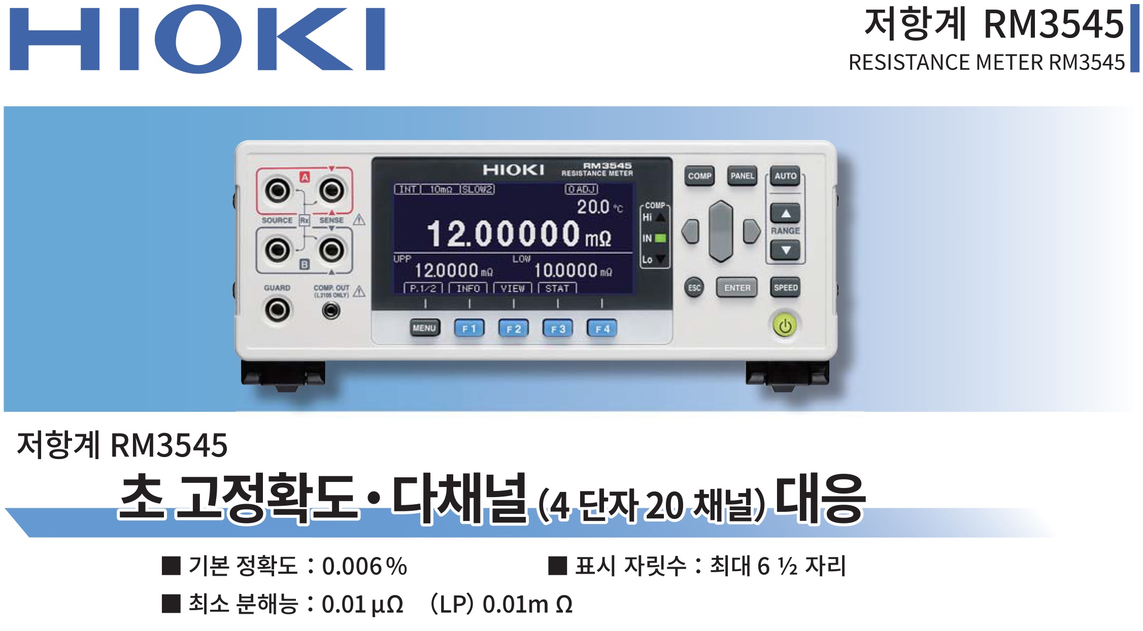 Hioki DC 저항계는 높은 정밀도로 광범위한 저항값을 측정합니다. RM3545는 모터 및 변압기의 권선 저항을 테스트하기 위한 고급 연구 및 생산 분야의 애플리케이션을 충족하는 초정밀 다중 채널 가능 저항계입니다. 전원 릴레이, 스위치 및 커넥터의 접촉 저항; 신호 릴레이 및 자기 부품의 저항.