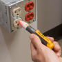 Fluke의 차세대 VoltAlert™ AC 비접촉식 전압 테스터는 사용하기 편리합니다. 단자 스트립, 콘센트 또는 전원 코드에 팁을 대기만 하면 됩니다. 팁이 빨간색으로 발광하고 경보음이 울리면 전압이 흐르는 것입니다. 전기 기사, 유지보수/서비스/안전 담당자 및 주택 소유주가 작업장 또는 집에서 활성화된 회로를 빠르게 테스트할 수 있습니다.