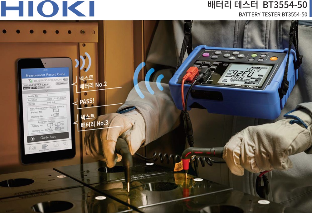 Hioki 휴대용 배터리 테스터는 모든 기업의 생명 유지에 중요한 UPS 및 축전지의 유지 관리를 지원합니다. BT3554-50 배터리 내부 저항 테스터는 배터리 저항 테스트를 통해 완벽한 진단을 제공함으로써 UPS 및 기타 납축 배터리의 열화 및 남은 수명을 평가하기 위한 표준을 설정합니다. 특별히 설계된 L2020 핀 유형 리드는 배터리 랙 깊숙한 곳까지 도달하여 단자를 완전히 프로빙할 수 있는 L자형 팁으로 테스트 효율성을 더욱 향상시킵니다.