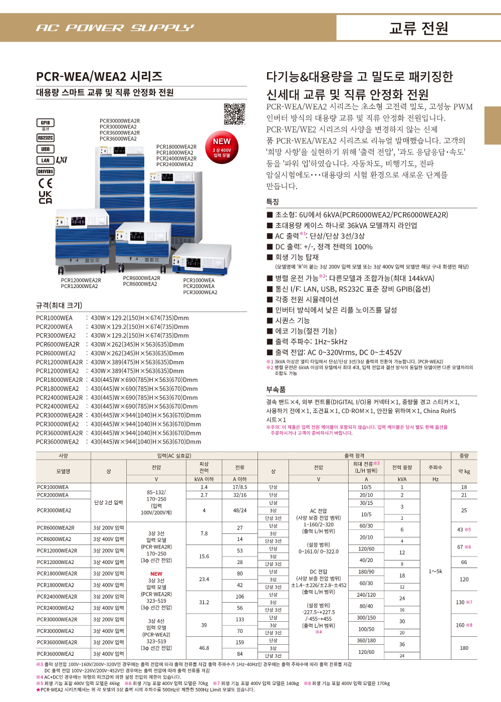 키쿠수이 - PCR6000WE2 3P4W 400V 프로그래머블 AC/DC파워서플라이 6kVA 3상/4선/400V AC/DC전원공급기