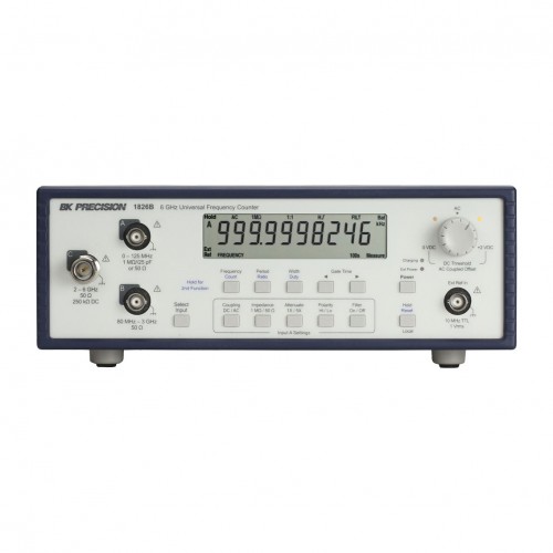 전면에는 주파수, 주기, 비율, 펄스 폭 또는 이벤트 카운트 측정을 표시하는 0.5인치 LCD가 있습니다. 여러 입력 채널을 통해 광범위한 주파수 범위에서 정밀한 측정이 가능합니다. 입력 A는 구성 가능한 커플링(AC 또는 DC), 입력 임피던스(1MΩ 또는 50Ω), 감쇠(1:1 또는 5:1), 임계값(완전 가변) 및 액티브 에지를 제공하는 유연한 신호 컨디셔닝을 제공합니다. 1826B의 경우 추가 입력 C는 50Ω 입력 임피던스와 2GHz~6GHz의 주파수 범위를 제공하는 N형 커넥터를 제공합니다.