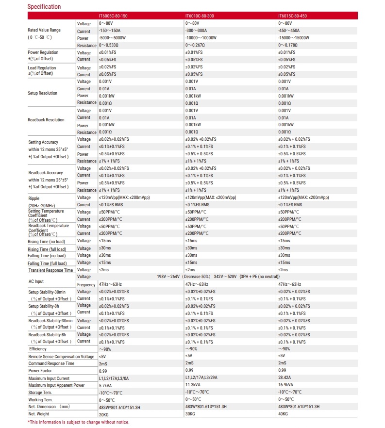 * 전류 출력 범위:  0 ~ 2040A(단일 캐비닛), 0 ~ 8000A(캐비닛 간 병렬 연결)