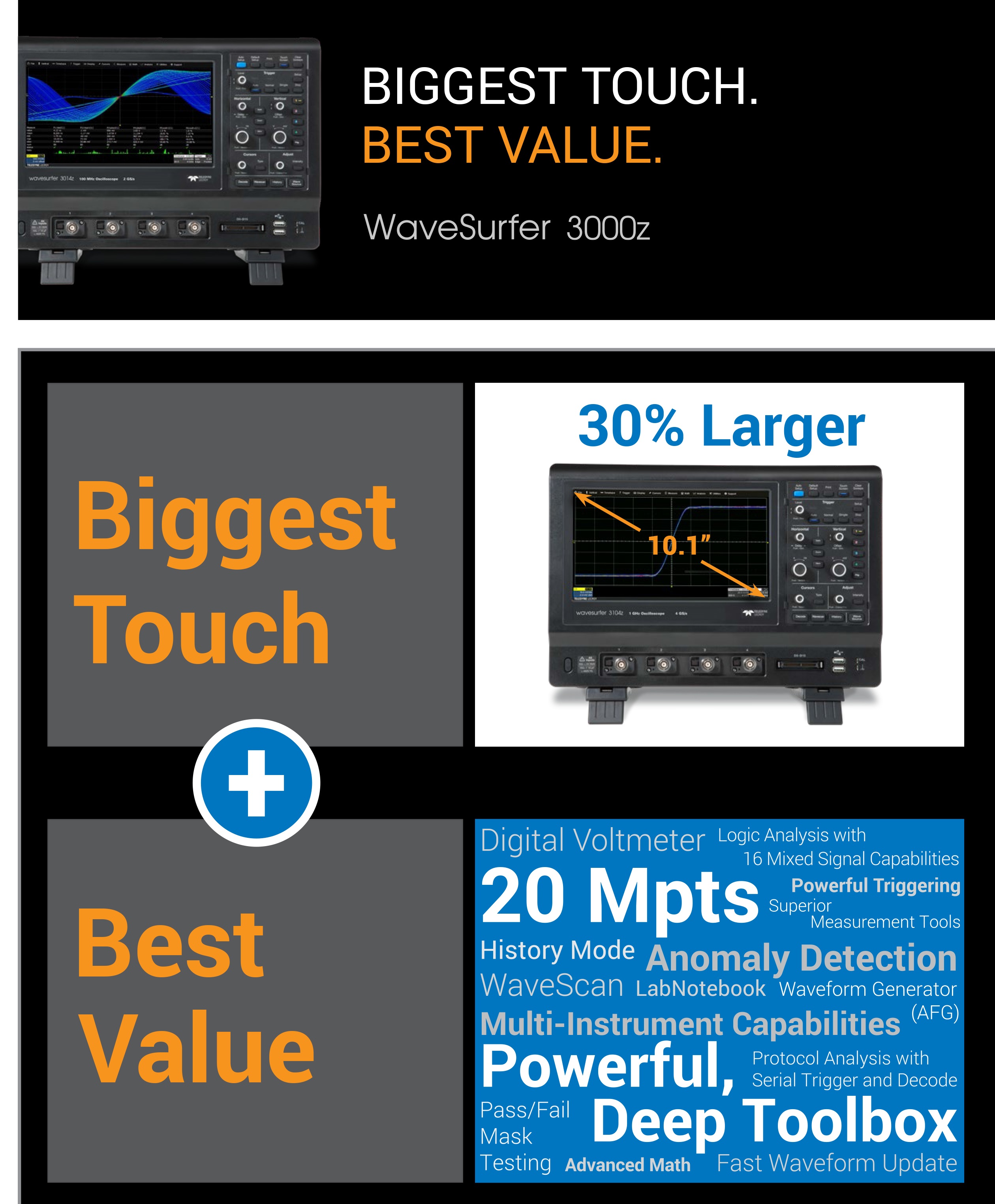 WaveSurfer 3024Z - 350 MHz, 4 ch, 4 GS/s, 10 Mpts/ch, 10.1" capacitive touch