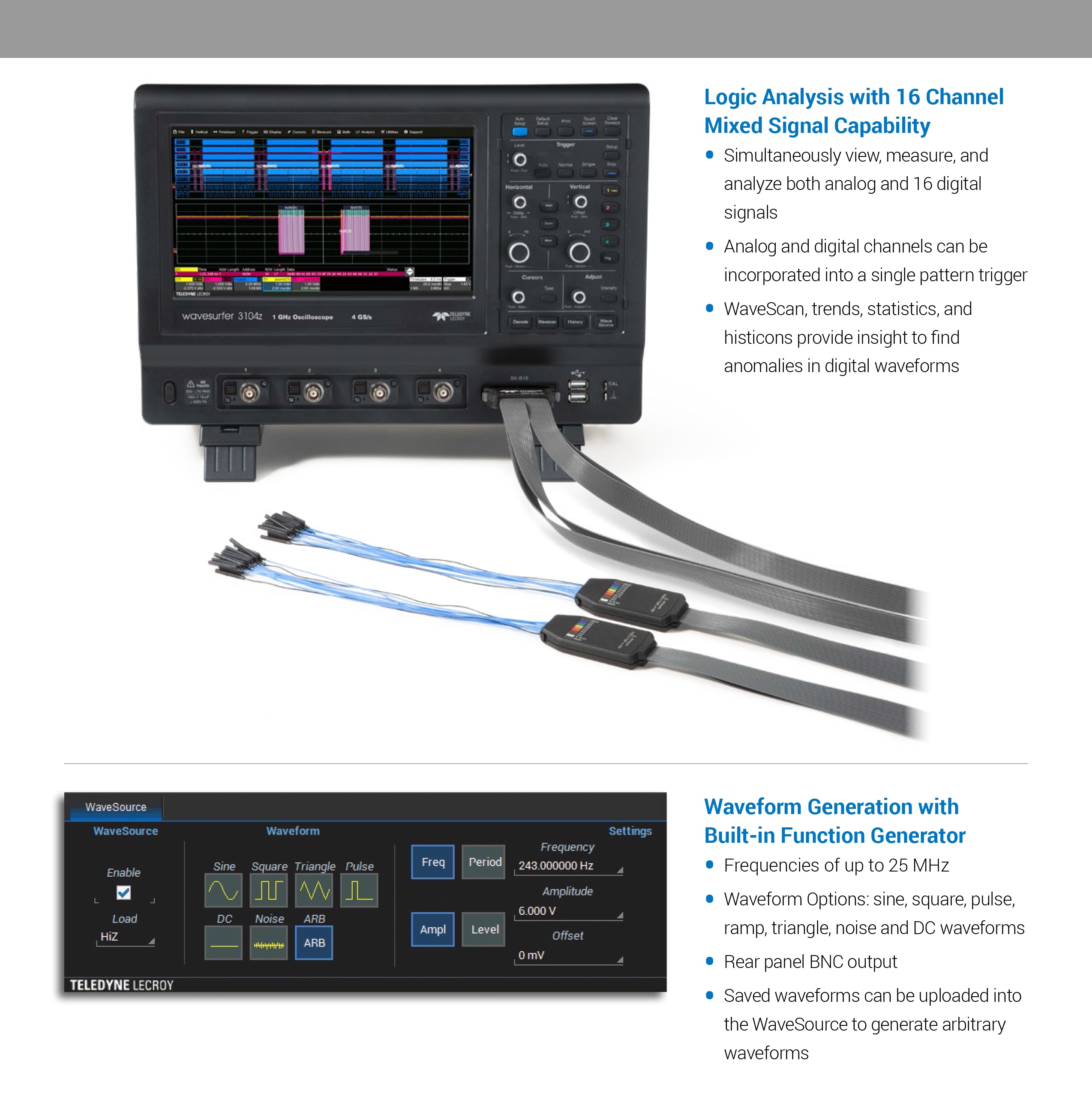웨이브서퍼 3000z 오실로스코프, 4CH, 100MHz - 1GHz 대역폭, 8Bit 분해능, 20Mpts